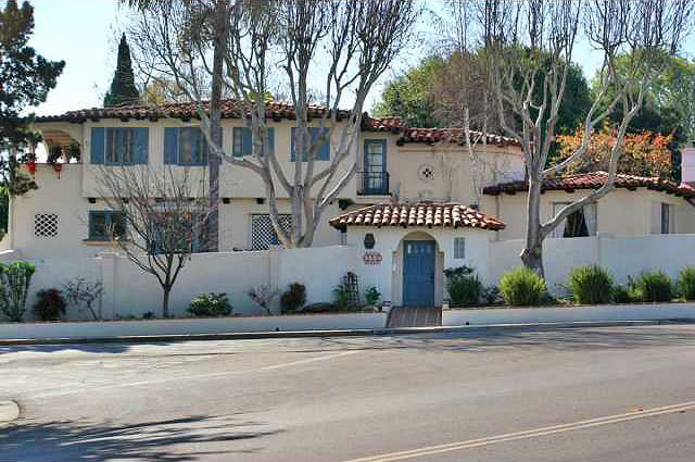 This magnificent Spanish home sits on a large corner lot completely walled in for ultimate privacy. The romantic entry will captivate you with its winding staircase, showcasing a custom mural and leaded French doors leading to a great outdoor patio area. Entertain in the spacious living room with beamed ceiling, hardwood floors and doors opening to the outdoor bar and pool. The separate formal dining room is perfect for cozy dinner parties or large family gatherings. Enjoy cooking in the kitchen with a large picture window overlooking the enclosed courtyard, newer stainless steel appliances and adjoining breakfast area. Watch TV or listen to music in your inviting family room. The fourth bedroom downstairs with attached bath is currently being used as a library and is ideal for a guest room or office. The second floor offers three bedrooms, two baths and two sets of French doors leading to a covered porch with views of downtown and the Coronado Bridge. The lush backyard boasts a large swimming pool, spa and nice grassy area. A detached guest house featuring a "great room" with a Murphy bed, an efficiency kitchen, walk-in closet and bath with skylight. The guest house porch is perfect for relaxing during the warm summer months. Home has been retrofitted by the port with new windows, heater, A/C etc.